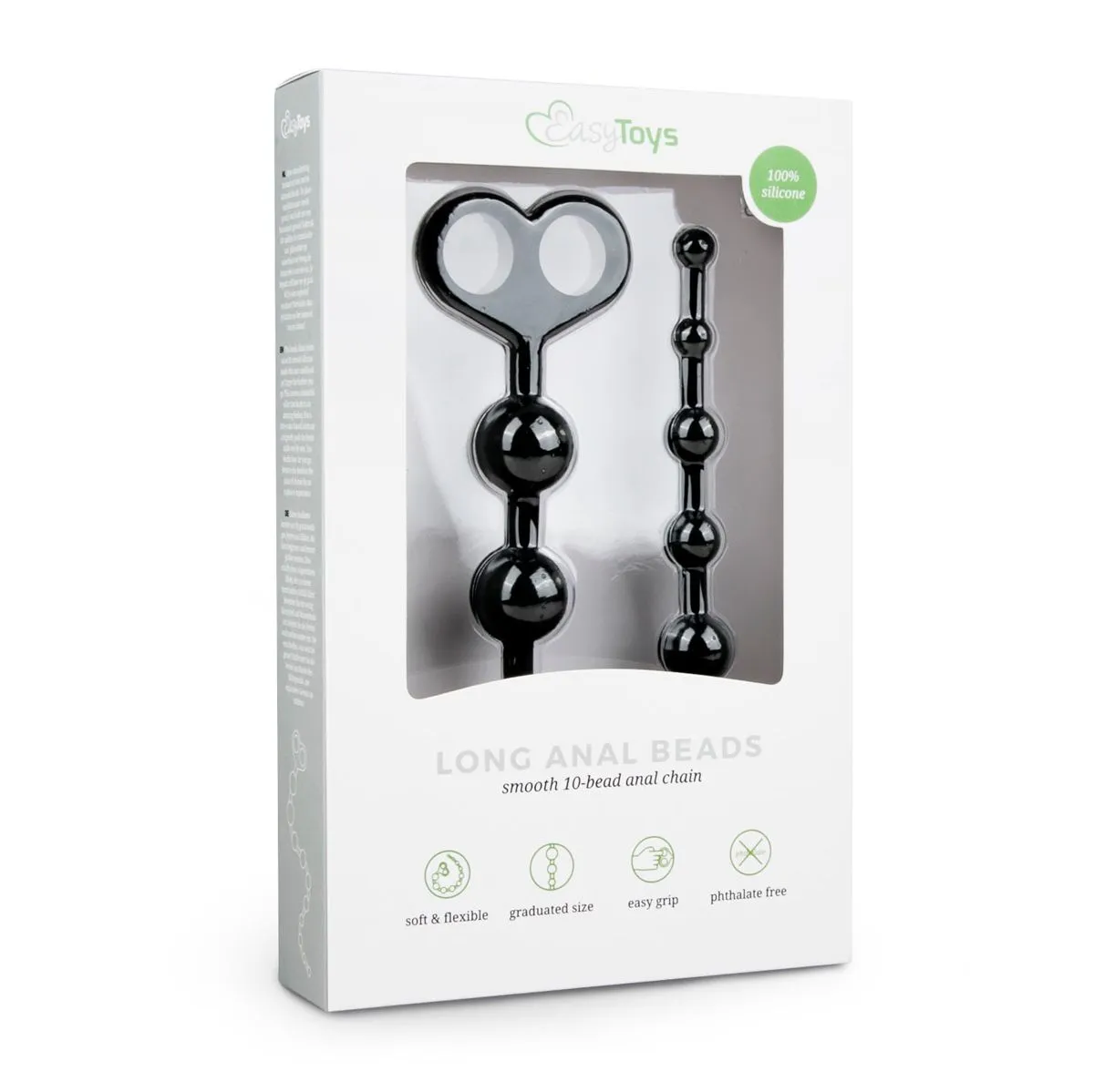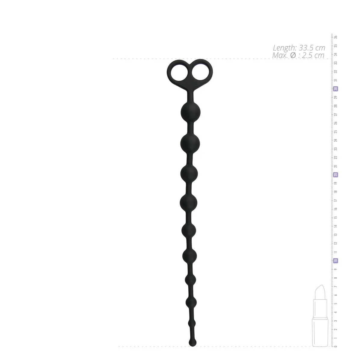 ¡Seguramente nunca has experimentado con una cadena de cuentas anales tan larga! Con un total de hasta diez bolas diferentes tienes garantizada una sensación intensa. ¿Eres nuevo en el sexo anal? Empieza insertando solo un par de las bolas más pequeñas. ¿Eres más experimentado? ¡Prueba introducirla toda! ¿Cuántas bolas puedes introducir? Extrae las bolas en el momento del clímax para experimentar una explosión extrema.