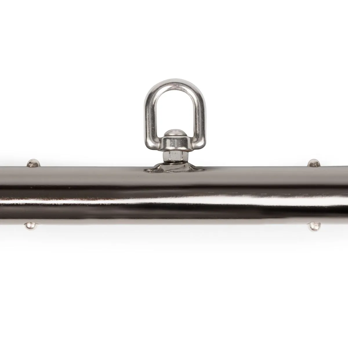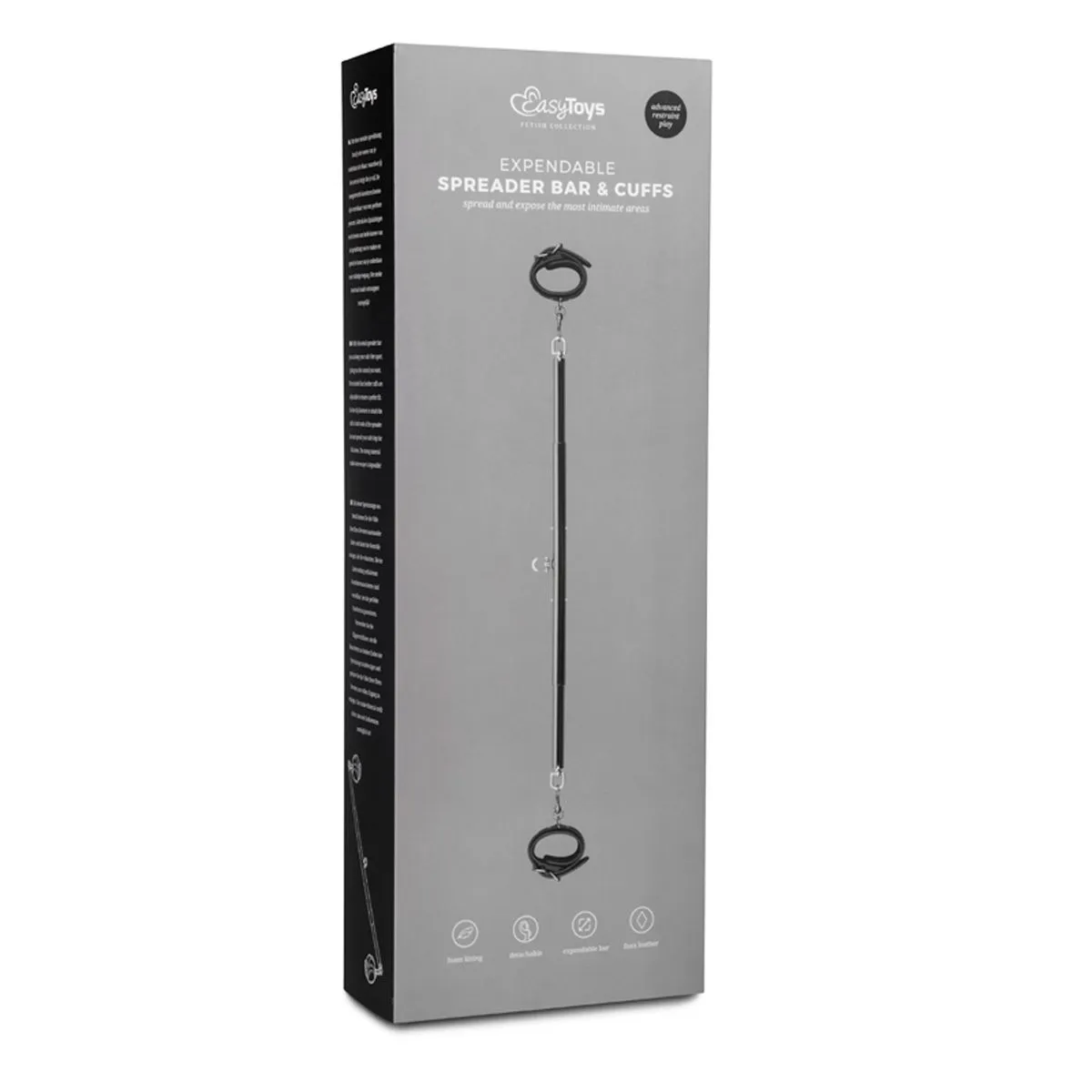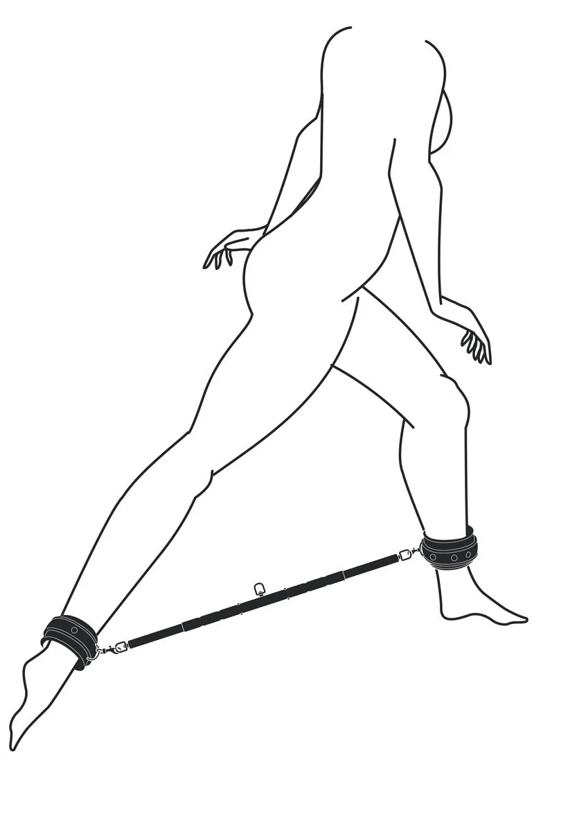 Restringe los movimientos de tu pareja con esta barra separadora de metal resistente con esposas. La barra puede fijarse en el techo utilizando el anillo con forma de D en la parte superior de la barra. Puede regularse la longitud entre 70 cm y 90 cm. Las esposas también pueden regularse fácilmente para tener un ajuste perfecto. Las esposas están adheridas a la barra con clips así que podrás separarlas y usarlas de manera independiente. También puedes utilizar el anillo en ambos extremos para agregar otros juguetes bondage a la barra, como por ejemplo esposas para los tobillos.