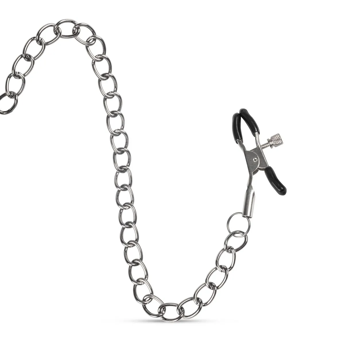 Vaya al extremo con esta mordaza de bola con abrazaderas de pezón de la colección EasyToys Fetish. Esta mordaza de bola negra está hecha de plástico liso con agujeros de aire. La pelota no tiene olor ni sabor, por lo que el usuario puede disfrutar de la mordaza sin preocuparse. La correa para la cabeza de imitación de cuero es ajustable para un ajuste perfecto. Hay abrazaderas de pezón con cadenas unidas a la correa. Las abrazaderas son ajustables con los tornillos en los lados para una sensación variable. Diámetro bola: 4.3 cm