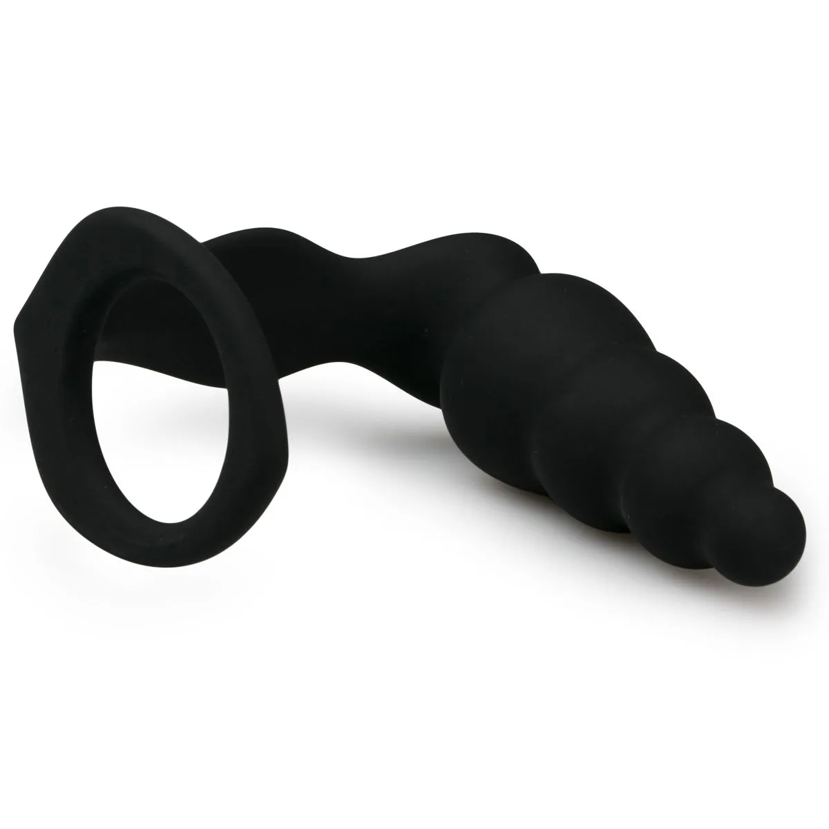 Prolonga tu erección y disfruta a la vez de una magnífica estimulación anal con este elegante plug anal y anillo para pene. El plug tiene un cuerpo estriado que proporciona estimulación adicional durante la inserción y extracción. El anillo y el plug están hechos de silicona de alta calidad y son muy duraderos. El material de silicona es firme a la vez que flexible y ligeramente elástico. Se limpia fácilmente con un limpiador de juguetes y un paño.