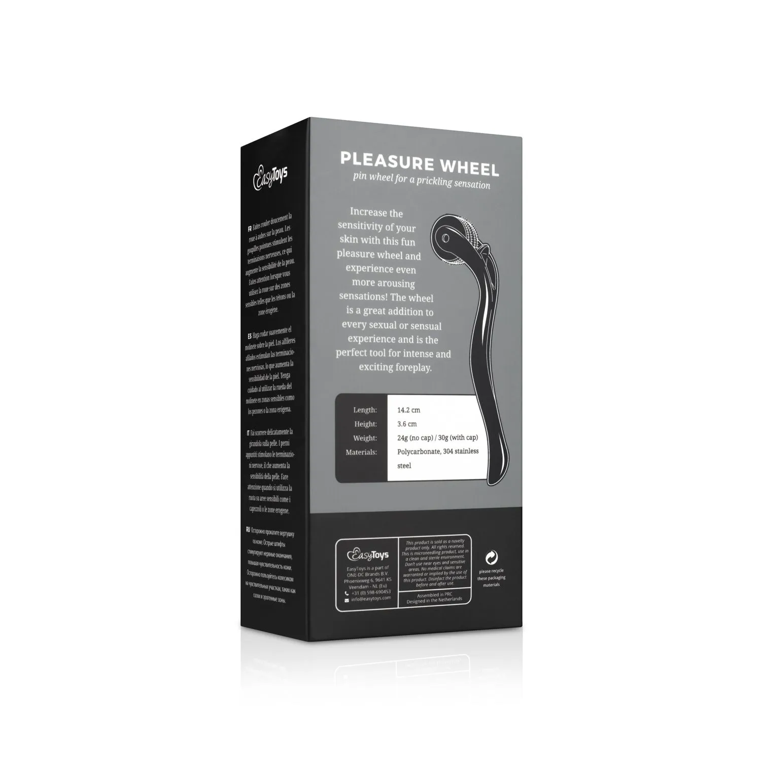 ¡Haz que tus juegos previos sean aún más emocionantes con la Rueda del Placer! Haz rodar suavemente el molinillo sobre la piel de tu pareja. Los alfileres afilados estimulan las terminaciones nerviosas y hacen que la piel sea más sensible al tacto. El molinillo tiene 7 ruedas para una estimulación perfecta de cada parte del cuerpo.
