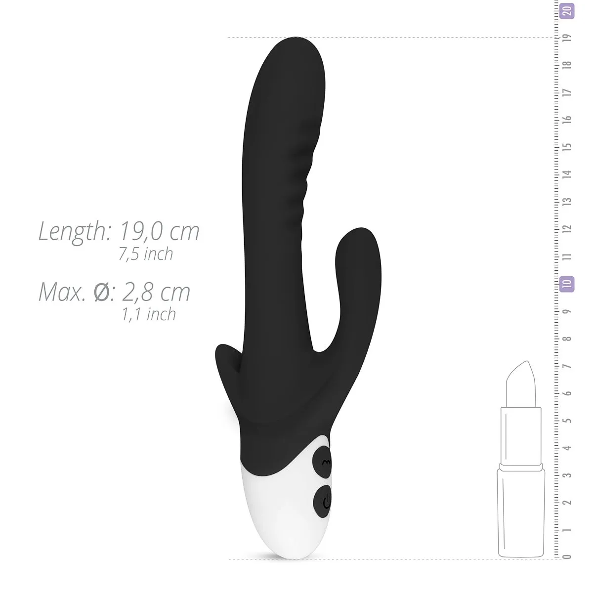 Estimule sus puntos más sensibles con este lindo vibrador de conejo de la colección EasyToys. El vibrador está hecho de silicona suave y tiene una estructura lisa. Debido a su tamaño compacto y diseño accesible, este vibrador es perfecto para principiantes que desean descubrir juguetes sexuales. El juguete tiene 10 configuraciones de vibración diferentes y es recargable con el cable USB incluido. Después de su uso, puede limpiar fácilmente el vibrador con agua tibia y un limpiador de juguetes. Use un lubricante a base de agua para mayor comodidad. El hombre perfecto no existe, ¡el vibrador perfecto sí existe! EasyToys tiene una amplia gama de vibradores. ¡Elige tu favorito y organiza una fiesta debajo de las sábanas todas las noches!