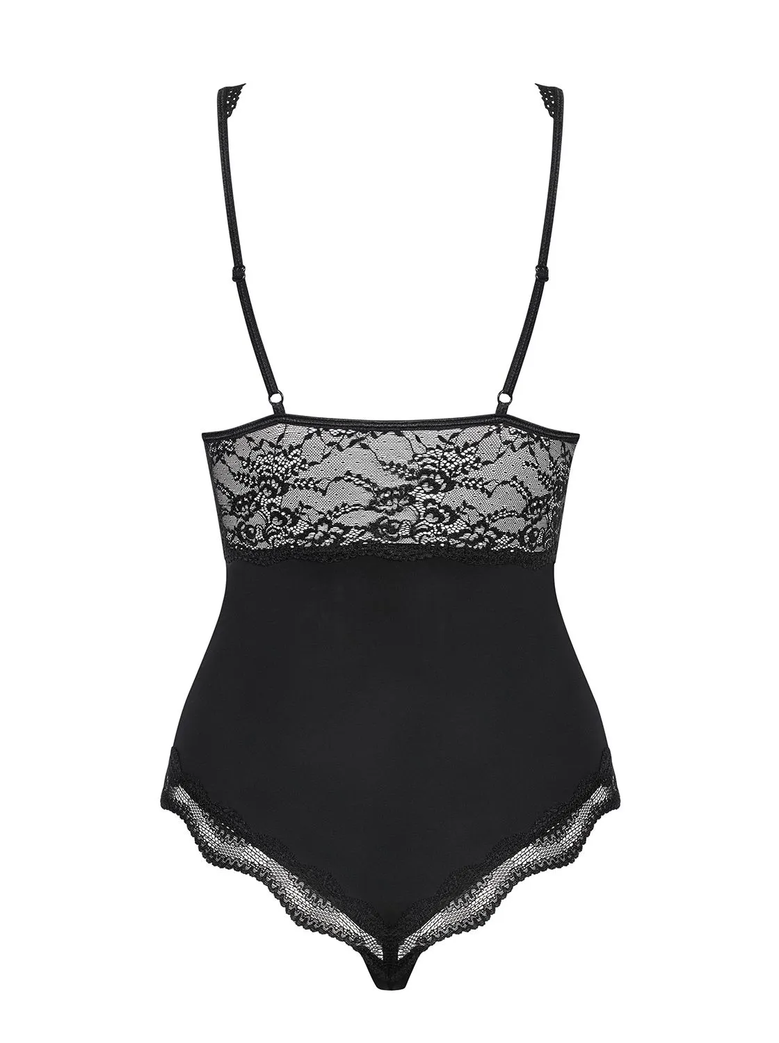 Body sensual de encaje, copas con aros y tirantes ajustables.