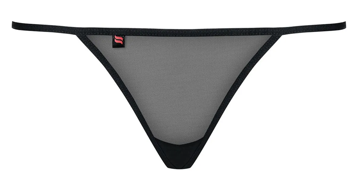Tanga negra con bordado en la espalda.