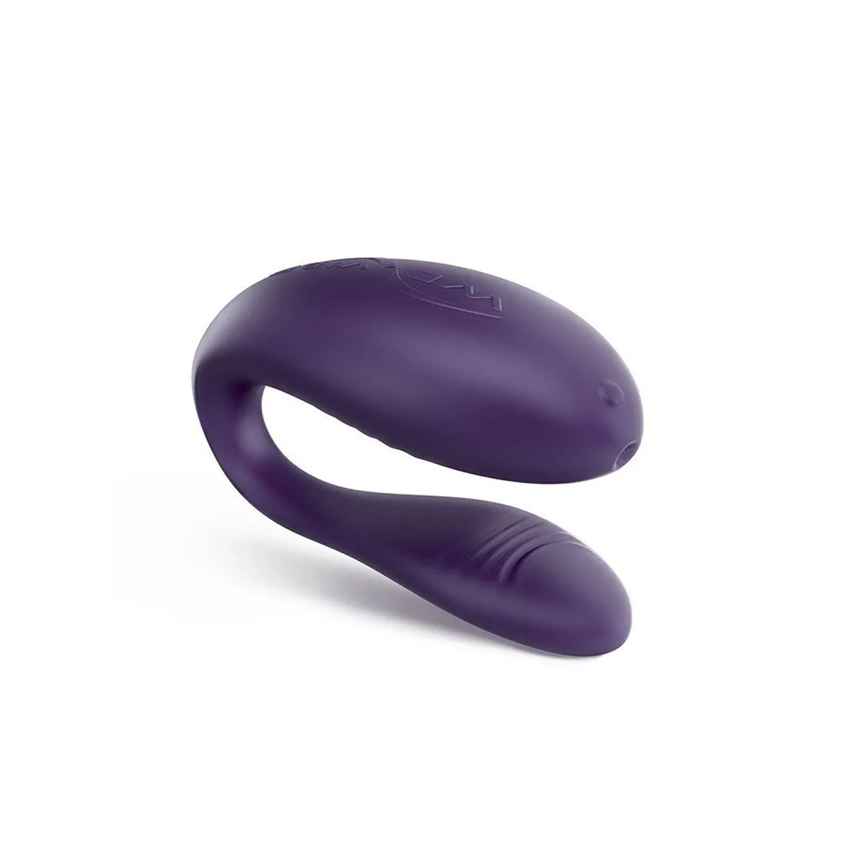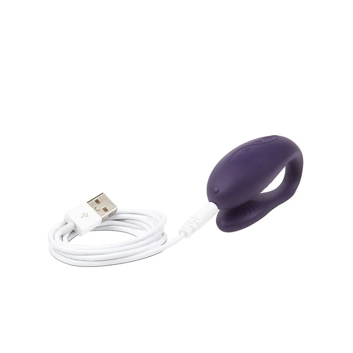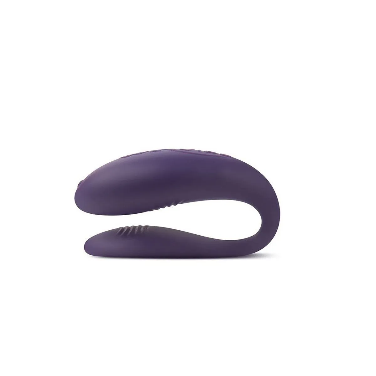 We-Vibe Vibrador de pareja morado en forma de U con 2 brazos. Un brazo es más grueso que el otro. Hay una parte en el interior de cada brazo que tiene surcos. La parte media es estrecha y flexible. 7 modos y 3 velocidades. Recargable con el cable USB incluido. Incluye un control remoto. Longitud 7,5 cm, Ø 3-4,6 cm. Material: silicona, libre de ftalatos según el Reglamento REACH de la UE.